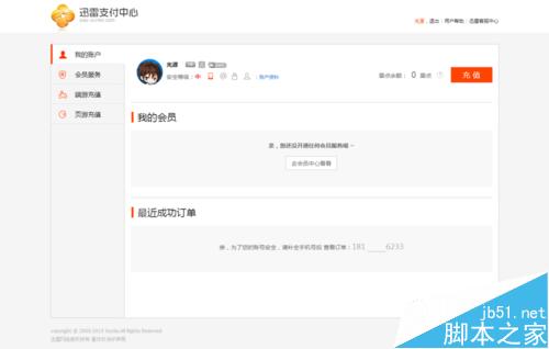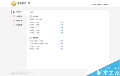 1、打开迅雷支付中心页面,登陆自己账号,点击账户资料。