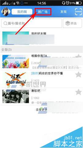 1)打开唯圈,点击上方的【圈广场】然后点击打开你要发布内容的圈子;(如下图)