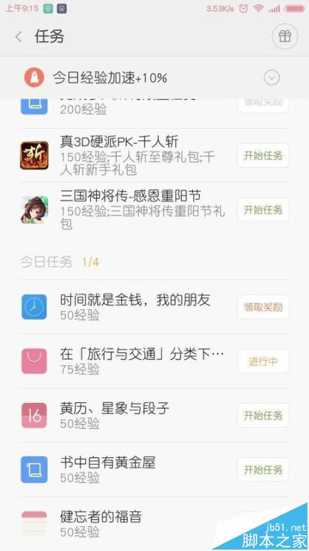 3、在任务里面有很多,依次点击进入,有问答的,无论答对还是打错,你都会获得积分