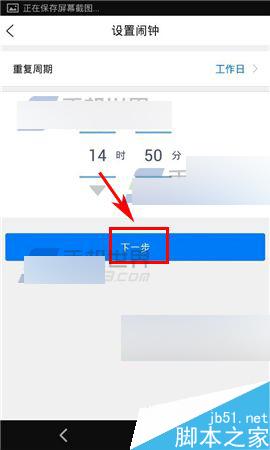 4)设置闹钟提醒时间点击【下一步】,接着编辑备注名后点击【保存】。(如下图)