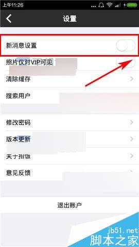 2)点击最下方的【设置】然后点击上方的【新消息设置】旁边的【按钮】即可。(如下图)