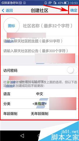 2)点击下方的【创建社区】然后点击下方的编辑框输入社区信息,最后点击右上角的【确定】即可。(如下图)