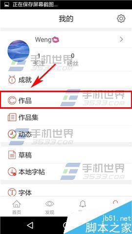 1)打开写字先生,点击右下角的【我的】,然后点击【作品】;(如下图)