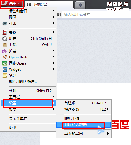 - 工具栏 菜单-------设置--------删除私人数据