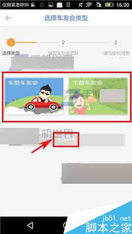 2)点击右上角的【创建车友会】,然后点击下方选择车友会类型,接着点击【下一步】;(如下图)