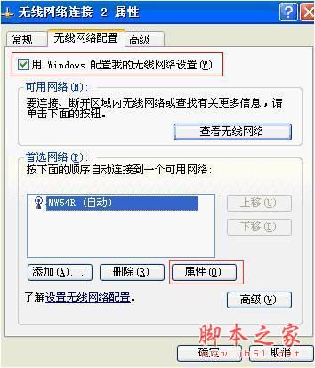 3. 在“无线网络配置”中选择所要连接的网络,点击“属性”。