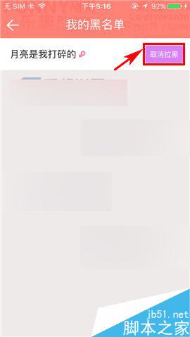 3)点击要移除黑名单好友旁边的【按钮】即可。(如下图)