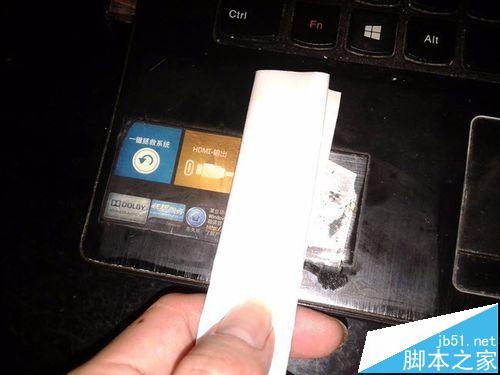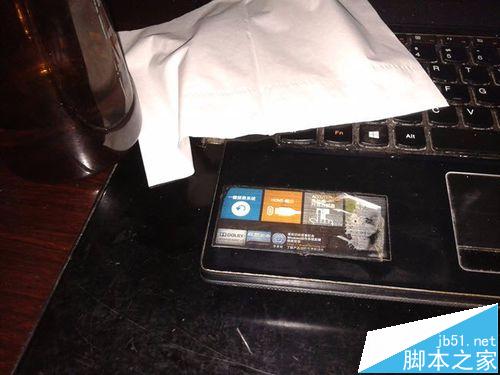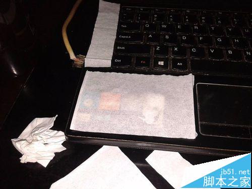 6、把纸面展平,以让水份有效蒸发,这样就能快速降温了,纸巾干了以后,再重复挤水,如此,可有效给本本降温了。