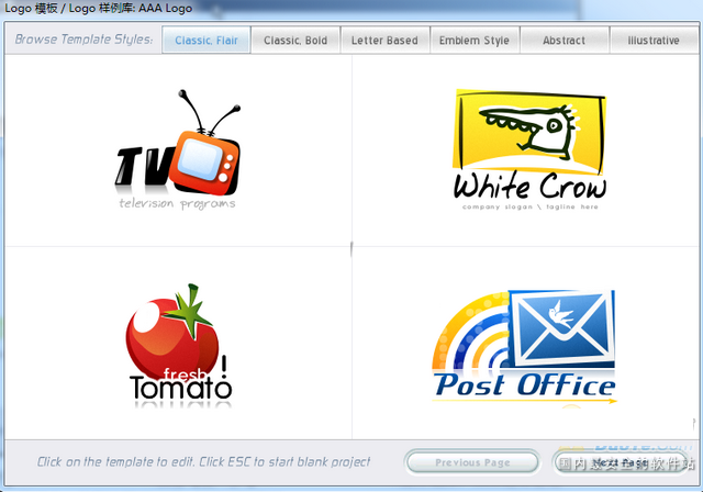 你会看见一个窗口【AAA Logo:模板库】,在这里挑选你喜欢的模板单击进行选择。