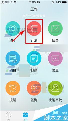 1)打开Tita,点击下方的【工作】,接着点击【计划】;(如下图)