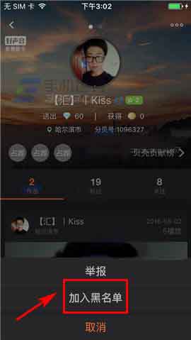 2)点击右上角的【三点】,然后点击【加入黑名单】即可。(如下图)