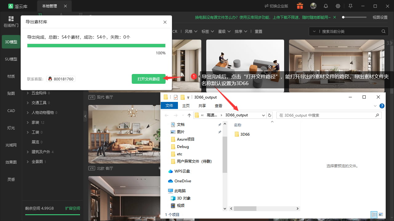 第四步:导出完成后,点击”打开文件路径“,可以快速打开该素材库文件的路径