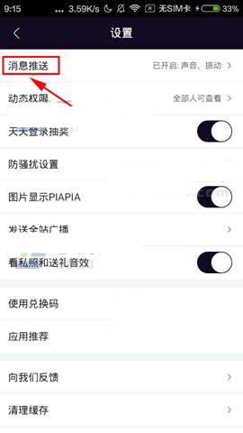2)然后再点击【消息推送】,接着再找到【接受消息提醒】然后点击旁边的【按钮】即可关闭!(如下图)