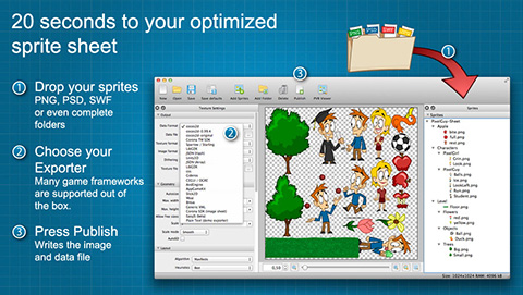 CSS sprites是TexturePacker一大功能,你只要将所有网页小图片添加到TexturePacker,然后设置文件导出格式为css,即可快速生成一张整合后的图片和css文件,这对网页前端设计师来说是不可多得的高效率工具。