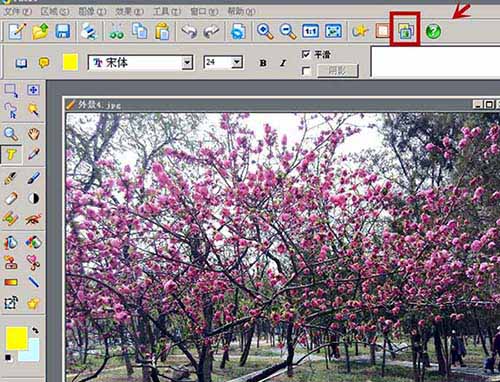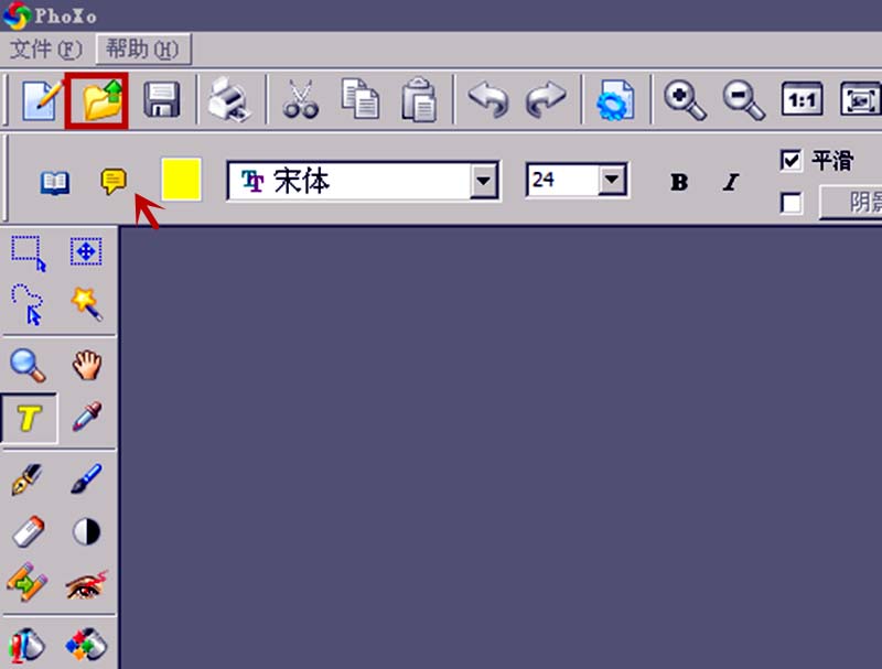 4、图片显示在Phoxo页面中,再单击素材库图标。