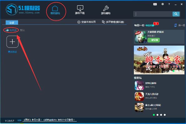 1、还是先打开51模拟器大厅,然后在其“我的游戏”界面随便打开一个游戏,或者点击“劲风版”打开51模拟器;