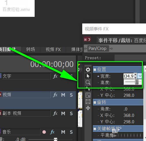 4、接着再对“位置”这里的“宽度”或者“高度”进行设置即可。往右滑动就是缩放视频,往左滑动则是相反的哟。