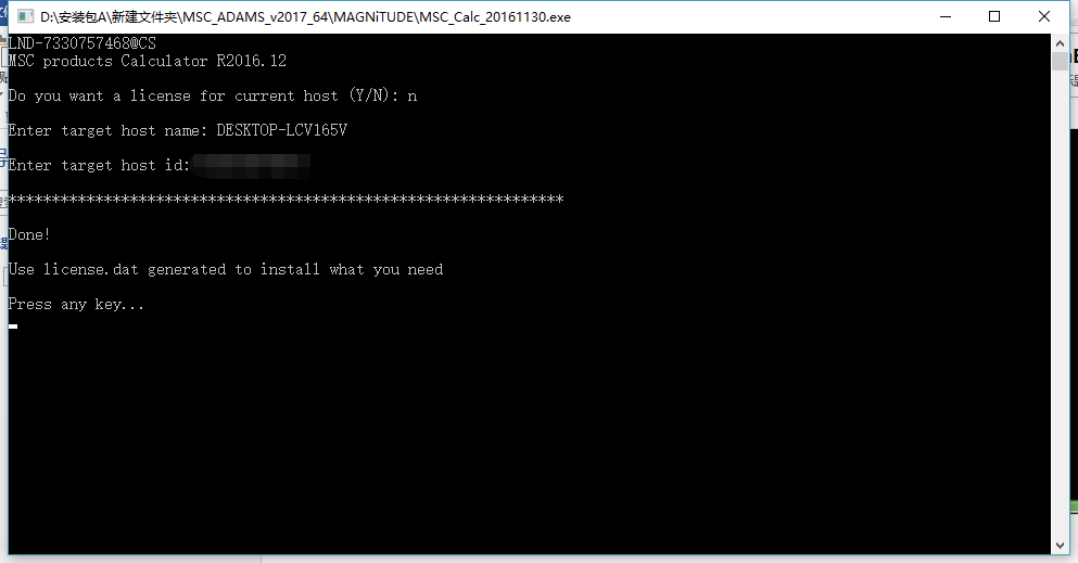 (这里有个疑问,貌似不断网我生成的license.dat里hostID也是对的,保险起见还是断网好些)