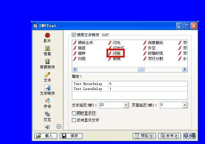 5、制作贺词的动态效果:点击文本特效——勾选:使用文本特效——然后选择一种特效,在这里选择闪烁的特效比较符合中秋的意境。