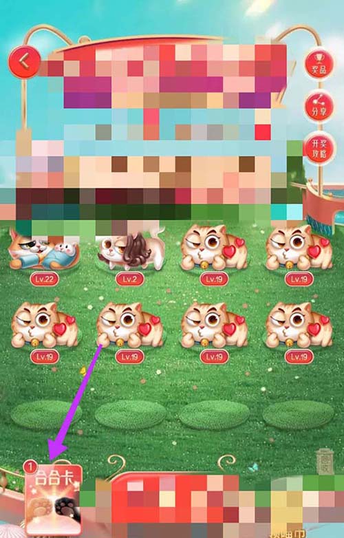 2、进入合猫猫界面后,箭头处可以看到当前拥有1张合合卡,点击后即可进入合合卡界面。
