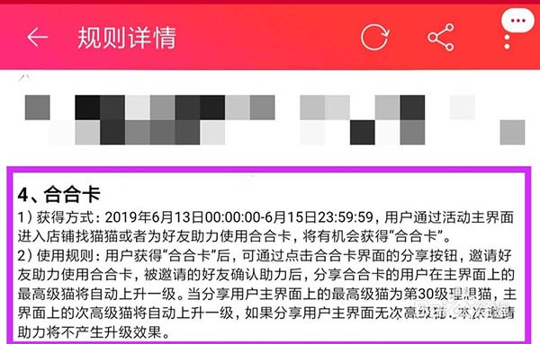 7、合合卡的活动日期为6月13日-15日,通过主界面进入店铺找猫猫或者为好友助力,都有机会获得合合卡,小伙伴快点抓紧使用吧。