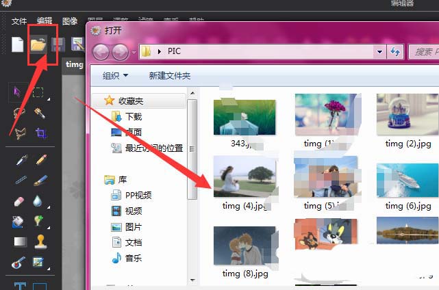 1、在图片工厂的编辑器中,选择打开图库将图片置入