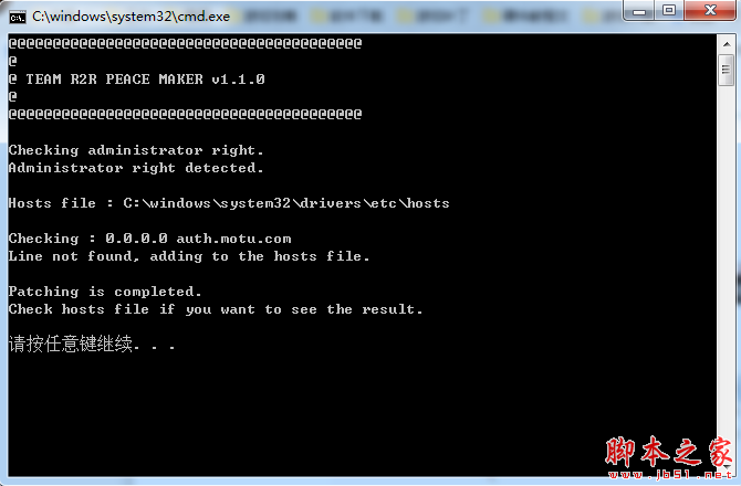 5.点击文件里的"dp_hosts_patch.cmd"补丁,或者阻止"auth.motu.com"