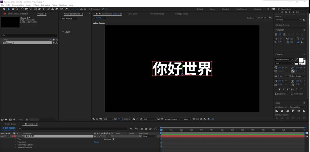 AE2019怎么快速建模三维立体字体?