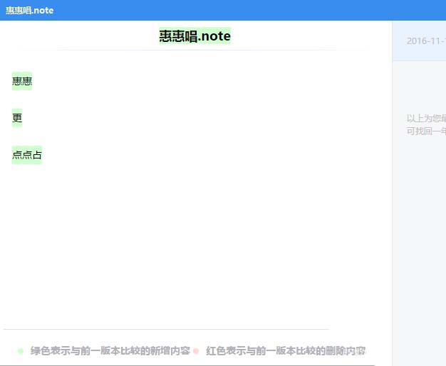 5、根据左侧的文字可以找到自己需要恢复的版本,绿色表示新增文字,而红色代表了删除的文字。
