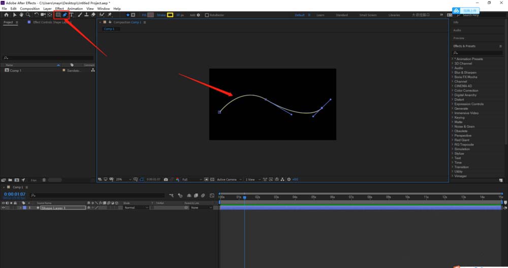 2、利用钢笔工具或者矩形工具绘制一个图形或线条(利用矩形工具绘制形状时,只需要形状的描边即可)