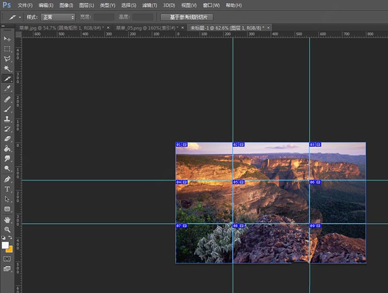 2、打开ps将一张素材图片拉入,并且将图片进行切割;(也可以直接找几张素材图片,比如照片也行);导出切片;