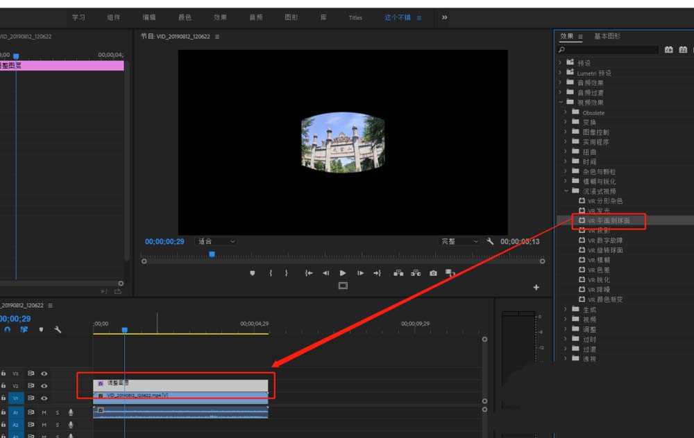 premiere自带的沉浸式视频效果类型中有一个视频效果叫VR平面到球面效果,这个效果可以制作类似于全景相机的视频效果,应用后的效果特别棒,该怎么使用这个效果呢?下面我们就来看看详细的教程。