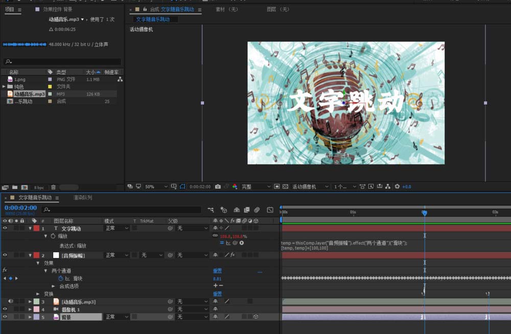 AE怎么实现文字跟随音乐节奏舞动的动画?
