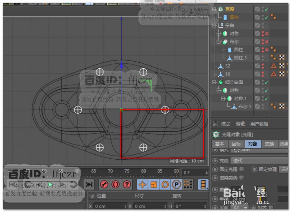 c4d模型怎么圆形阵列多个孔?