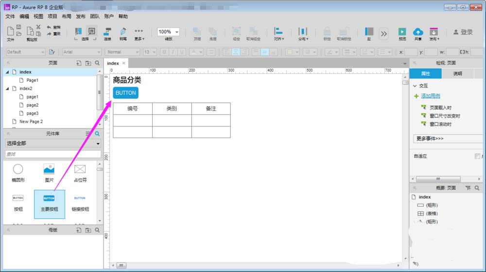 1、打开Axure,准备一个表单,再从左侧元件库拖取一个【主要按钮】元件到页面。如图