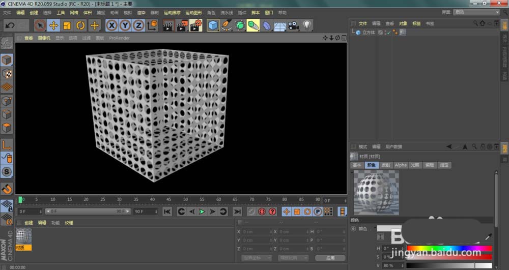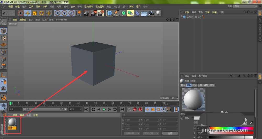 1、我们在C4D上面创建完成立体图形,双击材质面板空白位置,创建材质球
