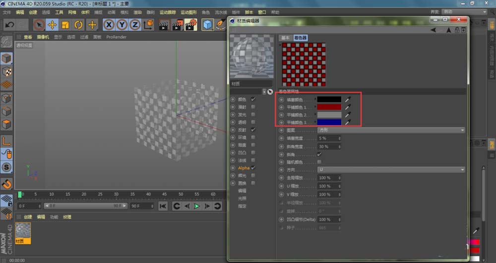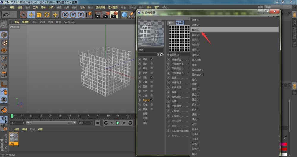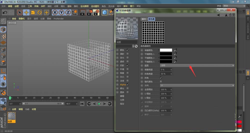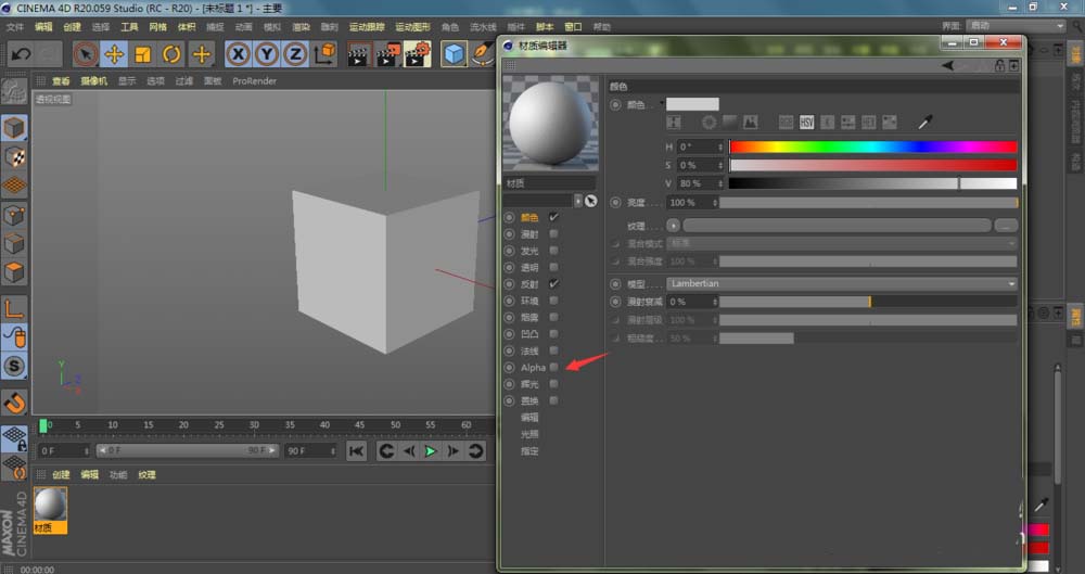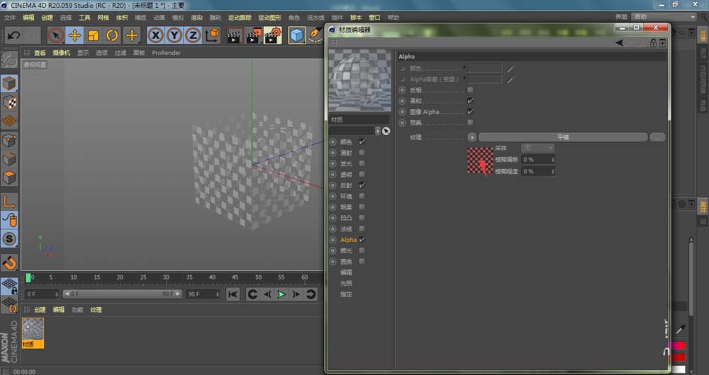 4、进入到C4D材质编辑器窗口,点击勾选Alpha