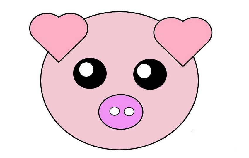 5、涂色步骤不难,猪头是浅粉色,耳朵是粉色,鼻子是玫红色,鼻孔是白色,这样就完成了。