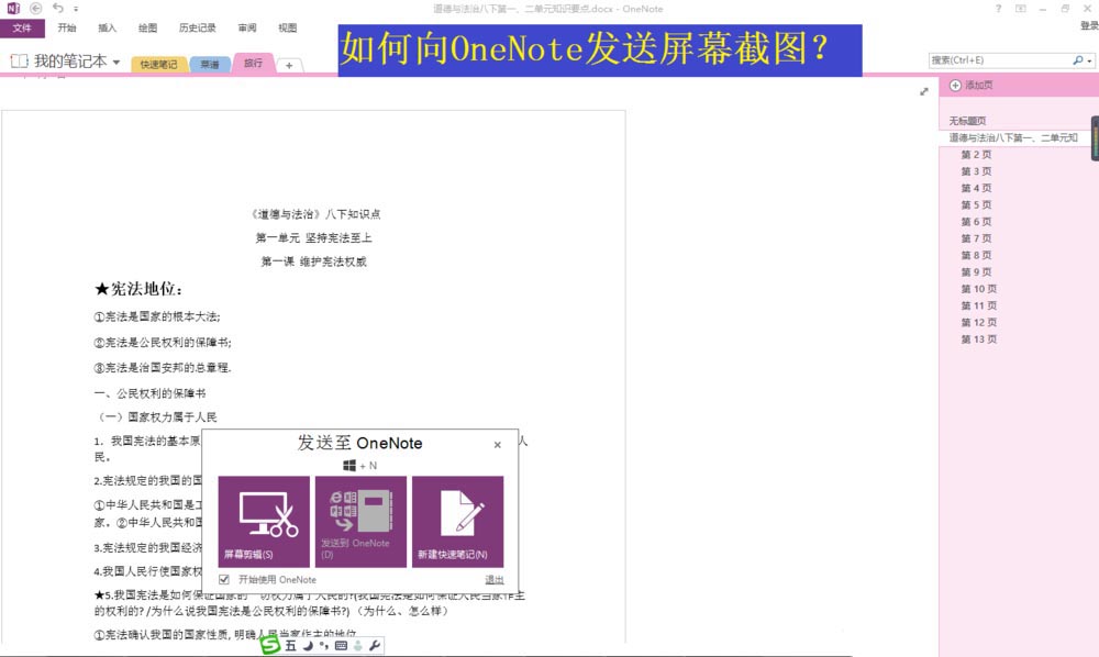 我们使用了OneNote制作了笔记之后,有时我们制作了一些知识要点,怎么把电脑屏幕的内容截图发送到OneNote呢?今天我们就来看看将截图发给onenote的方法。