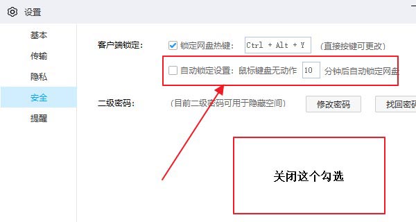 百度网盘客户端自动锁定怎么取消?