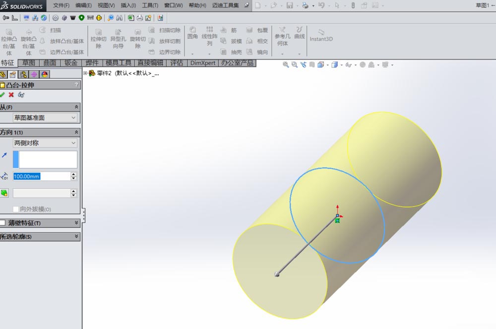 1、打开solidworks软件之后,任意画一个轴
