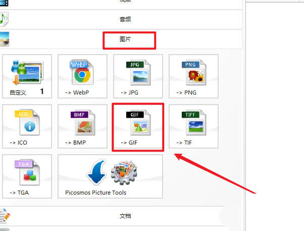 2、进入到软件首页中,点击图片选项卡下的【GIF】。