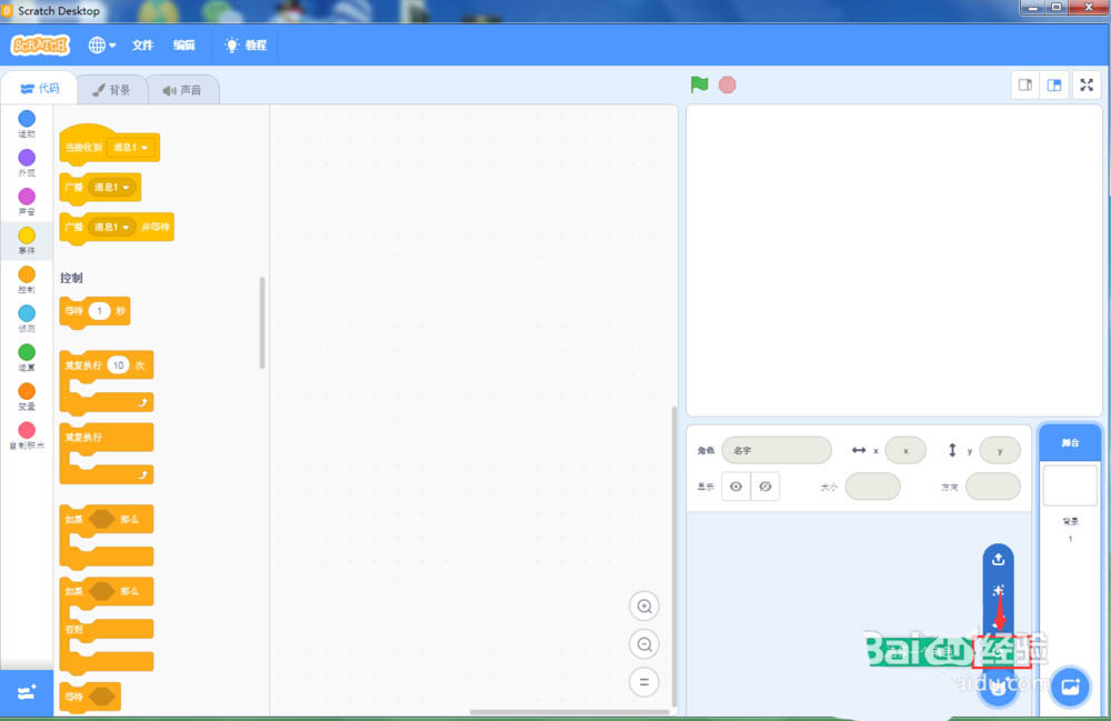 1、打开scratch3.0,进入其主界面;