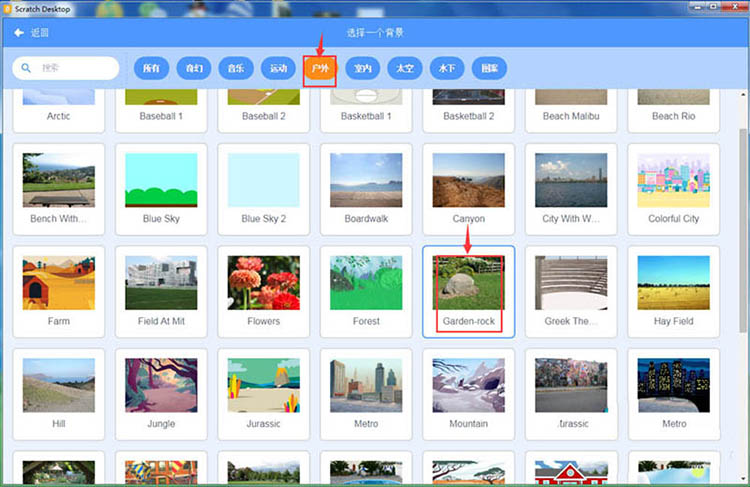 7、在户外类别中点击石头花园背景图;