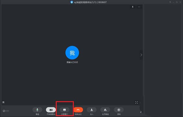 2、进去视频会议开会界面之后,点击共享窗口,如下图所示: