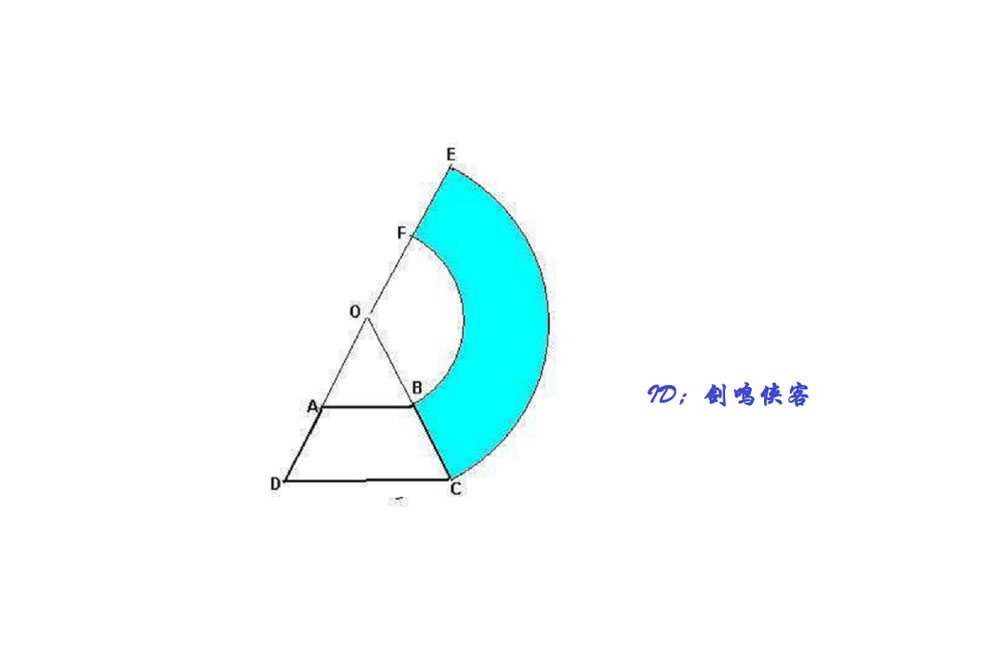 6、通过上面的方法,我们就得到了圆台的展开图,也就是图中的阴影部分。对于圆锥的展开,更为简单,只需要按本方法中画出外面的大圆即可得到展开的完整扇形。