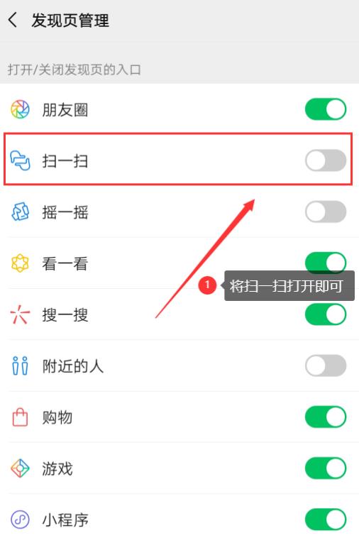 5、这里会发现扫一扫是关闭状态,打开扫一扫即可