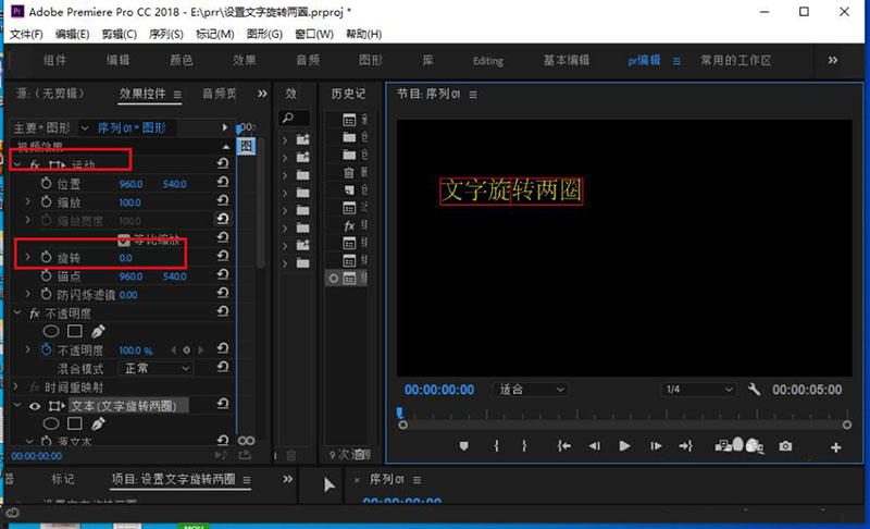 premiere怎么让文字旋转两圈? pr文字旋转动画的制作方法
