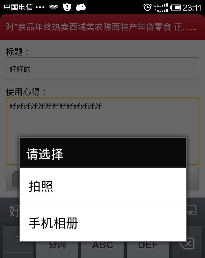 6、点击左下角的相机,开始对你购的物进行拍照。选择拍照。
