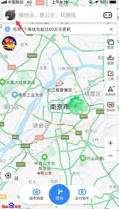 1、首先,点击百度地图app,进入主页,点击左上角处的“头像”按钮。